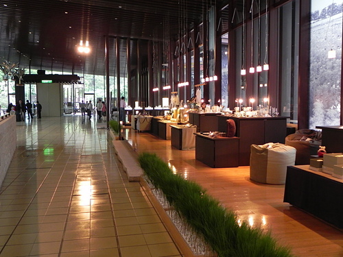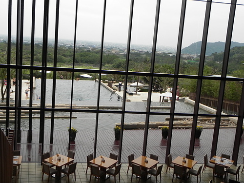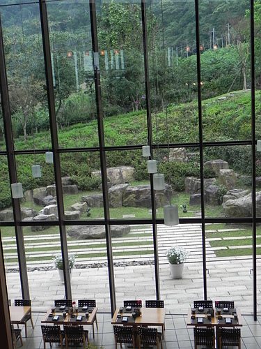 挑高的玻璃窗外 綠意盎然 景觀不錯