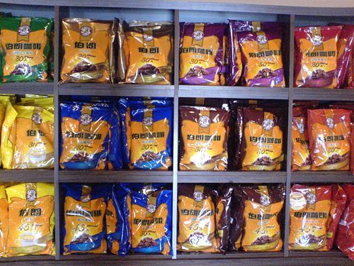 在這兒買的咖啡每包比市區伯朗咖啡賣的便宜30元