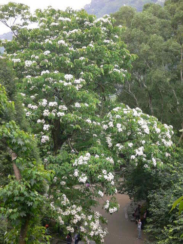 庭園裡的一棵百年油桐 花開壘壘 熱鬧非凡