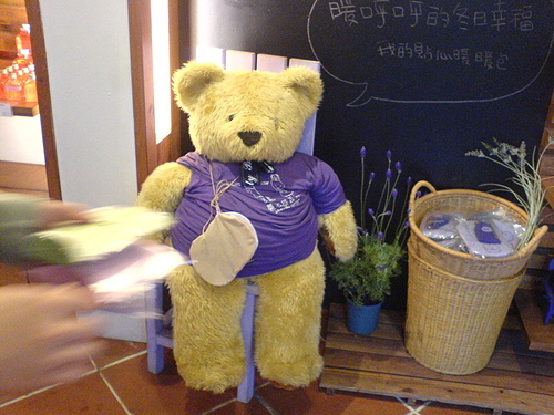 可愛的小熊維尼在門口招呼