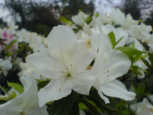 一整排盛開的杜鵑花