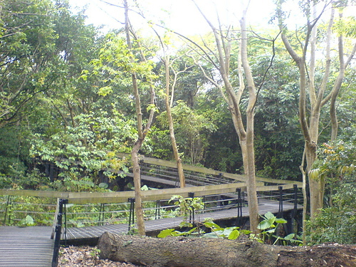 百年老樹陪伴著木棧道